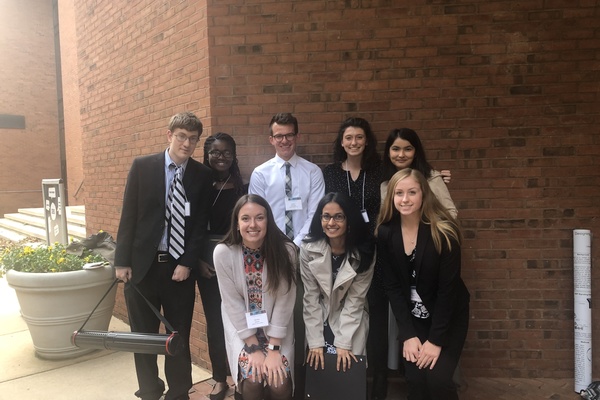 Eleven Lebanon Valley College students recently represented the College at the annual simulated European Union (EU) parliamentary session in Washington, D.C. A culmination of the disciplinary perspectives course, DSP 380: "EU Simulation," the trip was organized by the colleges and universities of the Mid-Atlantic European Union Simulation Consortium (MAEUSC).